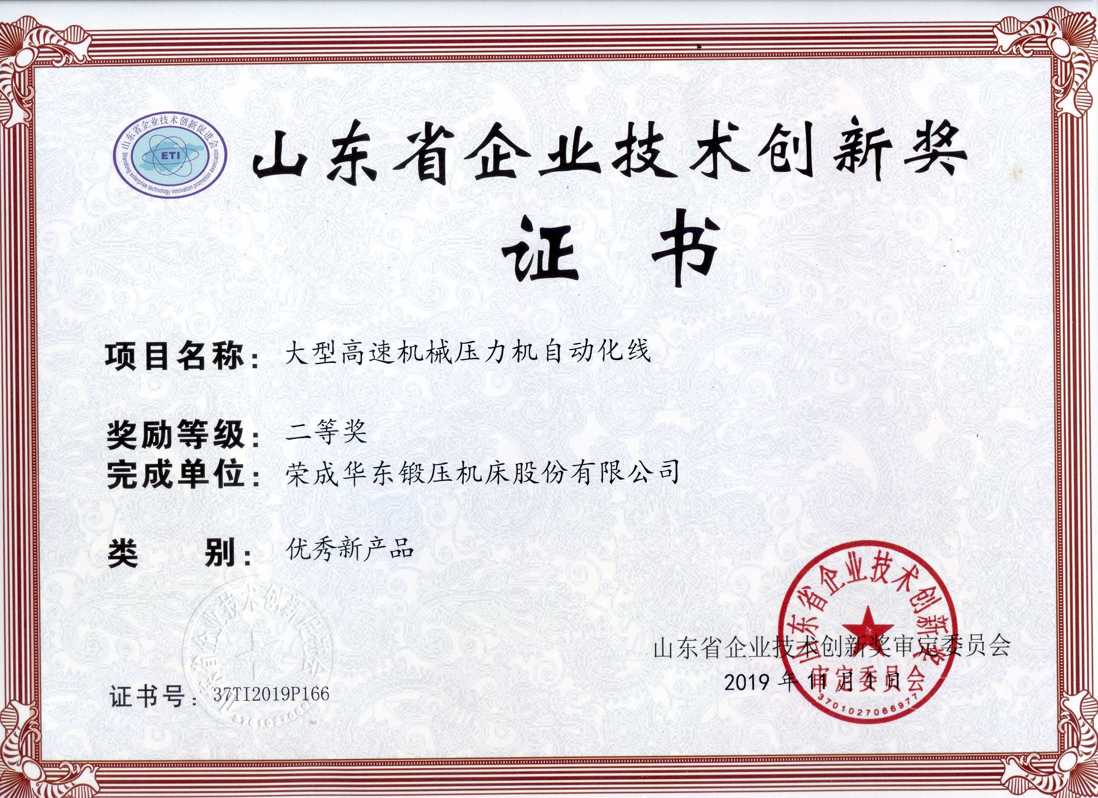 山東省企業技術創新獎-乘用車輪輻閉式單點壓力機生產線